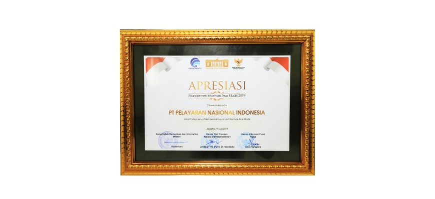 Appreciation of the Government of the Republic of Indonesia is given to PT PELNI for its success in "Management of Information on the Flow of Homecoming 2019" at the Bina Graha Building, Presidential Staff Office, Jakarta, Friday (07/19/2019). This appreciation is a collaboration between the Directorate General of Public Communication Information at the Ministry of Communication and Information Technology; Central Information Commission; and the Presidential Staff Office.