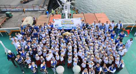 Through a visit to KM Kelud, PELNI introduced maritime knowledge and sailing safety to hundreds of elementary school students from North Jakarta.