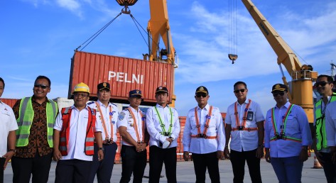 The Indonesian Minister of Transportation Budi Karya Sumadi was accompanied by the Director of PT PELNI's Sea Toll and Goods Transportation Business, Yossianis Marciano and other port stakeholders.