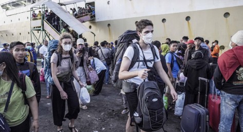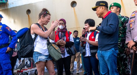 KM Kelimutu, a passenger ship owned by PT PELNI (Persero) which was assigned to transport tourists trapped in bad weather arrived at Legon Bajak Harbor, Karimun Jawa, Tuesday (27/12) evening