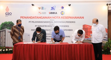 PT PELNI (Persero) together with PT INKA (Persero) and Institut Sepuluh Nopember (ITS) signed a memorandum of understanding on the synergy of logistics facilities for state-owned enterprises (BUMN) and universities.